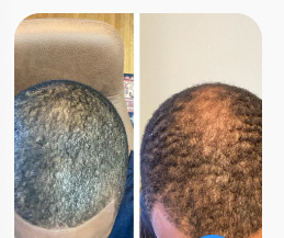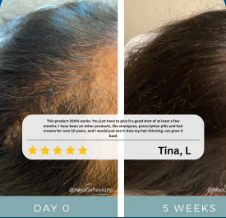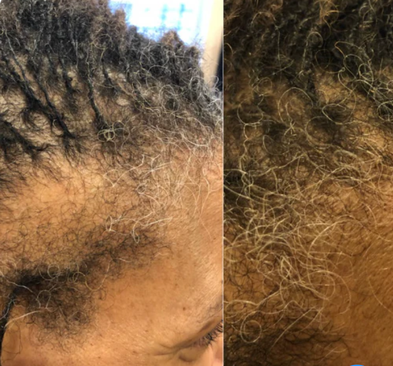 - Crecimiento visible de cabellos nuevos alrededor de las sienes y la línea del cabello en la semana 2
